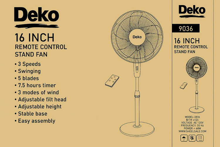 متاسفانه این کالا در حال حاضر موجود نیست. میتوانید از طریق لیست بالای صفحه، از محصولات مشابه این کالا دیدن نمایید.پنکه ایستاده ریموتدار مشکی Deko ترکیب شیک، مقاوم و قدرتمند ۳ سرعت تایمر ۷.۵ ساعته ریموت کنترل طراحی خاص رنگ مشکی