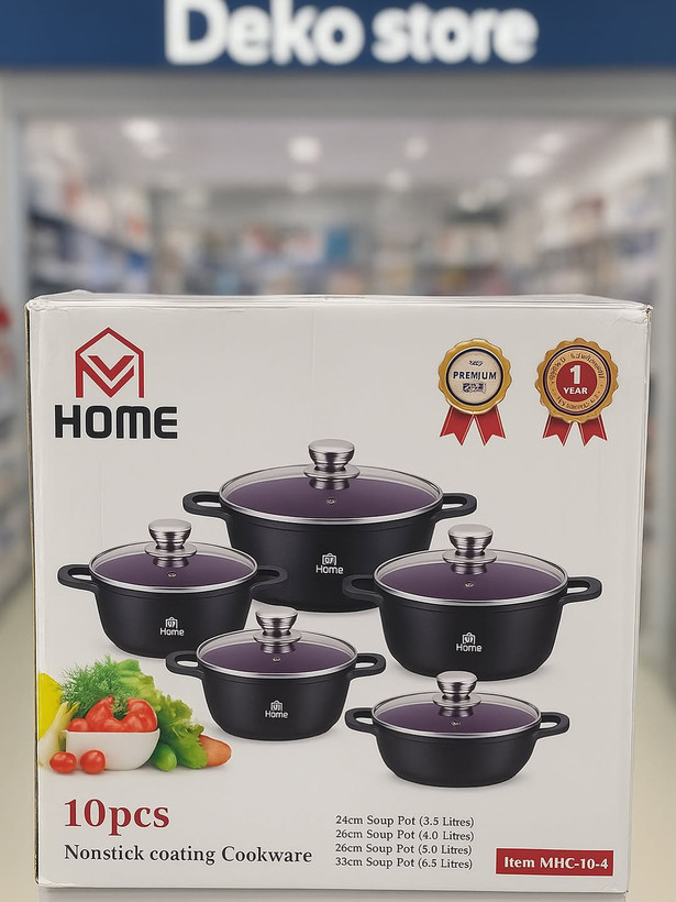 سرویس قابلمه ۱۰ پارچه هوم Home گرانیتی با درب شیشه‌ای